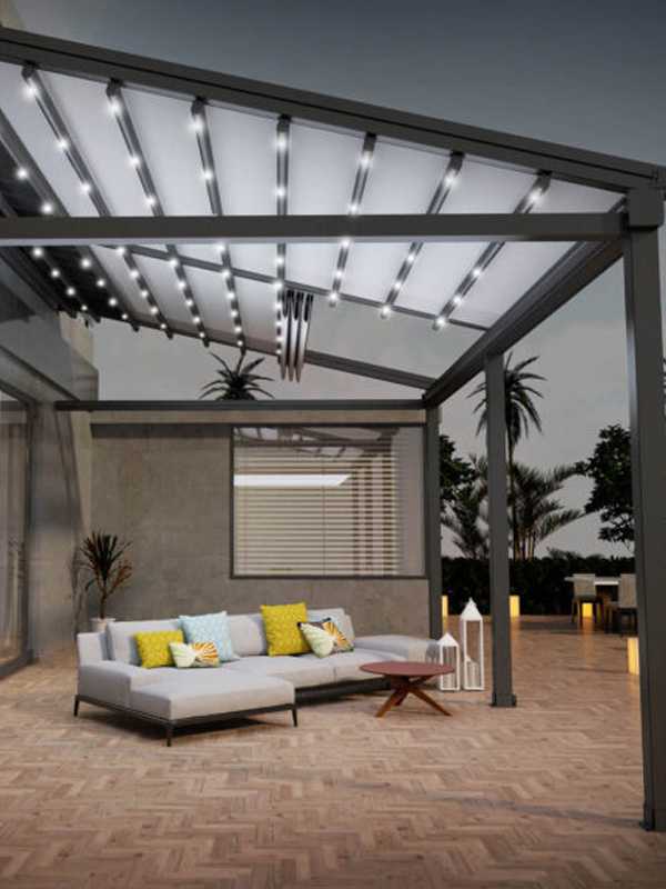 Aluminijske pergole elegantno su i funkcionalno rješenje za zaštitu terasa, vrtova i ugostiteljskih prostora od sunca, kiše i drugih vremenskih utjecaja. Motorizirani pokretni krov od PVC platna učinkovito štiti od UV zraka i pruža odličnu izolaciju tijekom cijele godine.